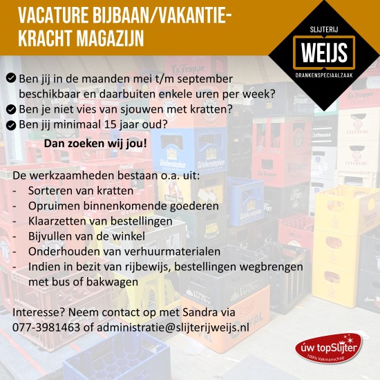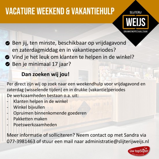 Vacatures: weekendhulp, bezorger voor een of meerdere dagen, vakantiekracht